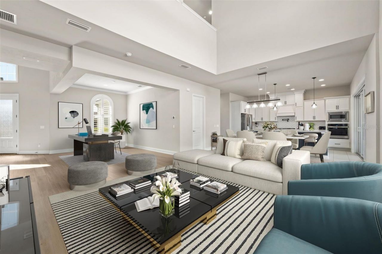 One or more photo(s) has been virtually staged. This is not just another Oakmont listing, it is the only Brooke model on the market, and it was built to stand apart. Positioned on a premium lot and enhanced with over $50,000 in upgrades, this home exudes sophistication at every turn. Set against a tranquil water backdrop, you have no rear neighbors behind you. The second you walk in, you are welcomed with cathedral ceilings, an open floor plan, and three levels of towering windows that perfectly frame the pond, making the view an integral part of the home's design. Boasting five spacious bedrooms, 3.5 baths, a private study, and an upstairs loft, and 3 car garage, this home offers space to live, work, and play. Every detail has been thoughtfully curated from the upgraded quartz countertops, to the GE appliances (including a microwave and oven that doubles as an air fryer), to the gas stove with a pot filler and generous walk-in pantry. Upgraded LVP flooring flows throughout the first-floor living areas, complimented with tile in the wet areas. Custom window treatments enhance every room, with plantation shutters at the front, app-controlled power blinds in the living room and primary bedroom and wooden blinds in the upstairs bedrooms.The primary suite is a true sanctuary with an oversized closet accessible from two entryways, an ensuite bath with double vanities and a walk-in shower framed with floor-to-ceiling tile and a stone-accented base with a built-in seat. Extra luxuries you will be sure to enjoy is the separate garden tub and private water closet. Upstairs, you will find two bedrooms on one side and an additional two bedrooms on the other end. One pair of rooms share a thoughtfully appointed Jack and Jill bath, while the other features a private guest bath, creating a balanced layout for family or guests. The loft is a unique space that the sellers had specifically walled off intentionally, creating an additional area of privacy. This area is perfect for a gym, media room, or playroom. Step outside to the screened-in lanai with stone pavers, extended 15 feet to create an even better outdoor experience. Beyond the home, residents enjoy the very best of Oakmont's lifestyle amenities, including one of the largest residential pools, a fully-equipped fitness center, tennis and pickleball courts, basketball and volleyball courts, a playground, and walking and biking trails. Nature enthusiasts will love the unique Gopher Tortoise Nature Reserve with its 2-mile trail. This location has everything you would want or need, whether you're looking for top rated schools, a quick commute to all major hospitals, or easy access to dining and shopping. Schedule your private showing today!